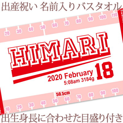 名入れは「お名前」と「お誕生日」の他、お子様の日々の成長がわかる「身長計測」の目盛りも入っているバスタオルです。